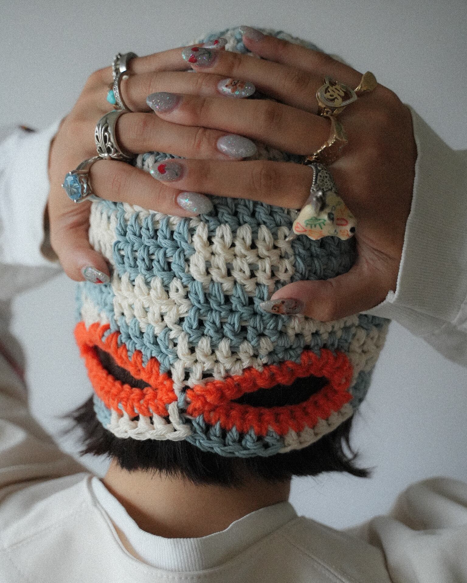 ※全て手作業で製作している1点ものニットアイテムですので、寸法や柄の出方に多少誤差がある場合があります。