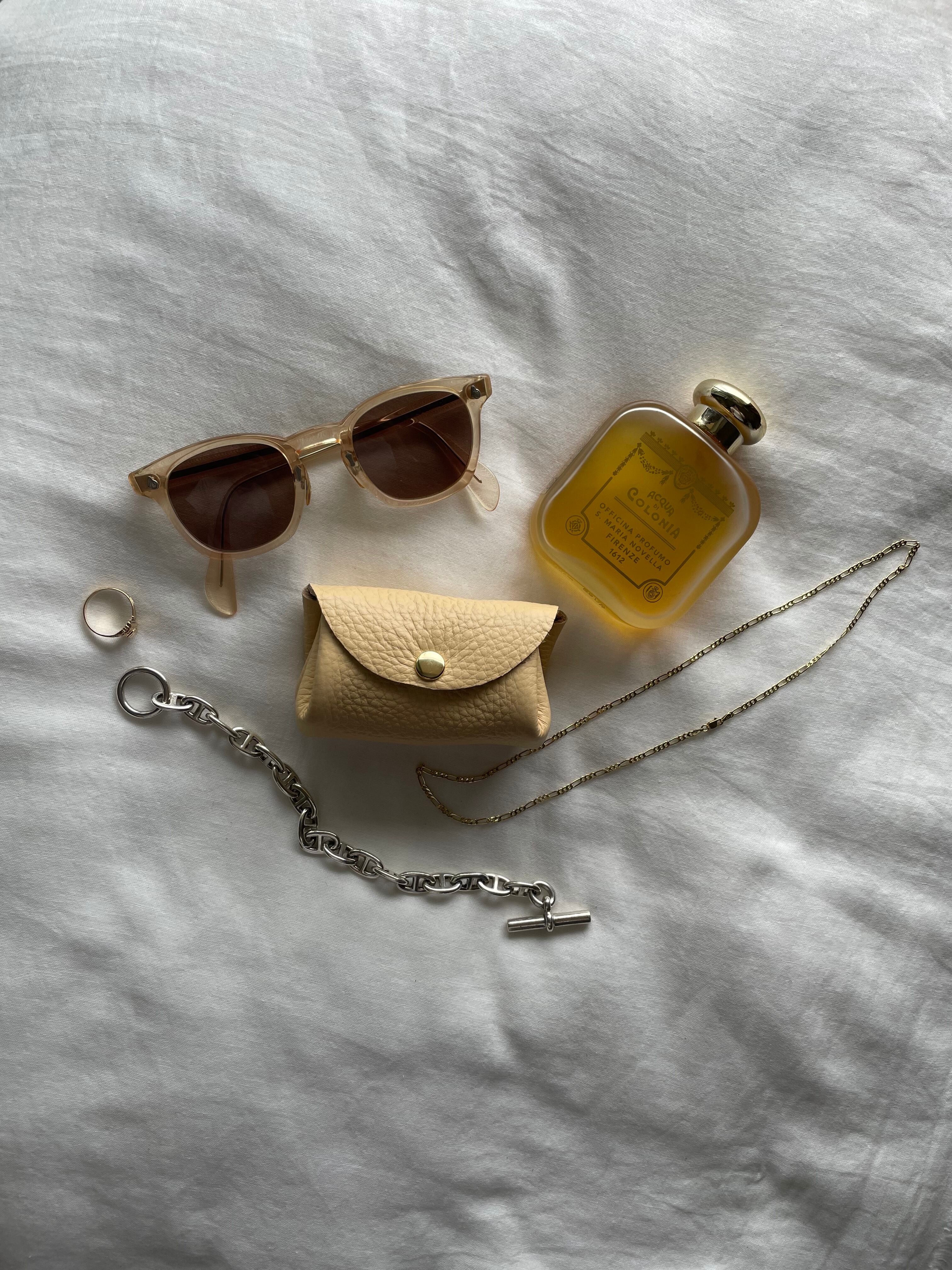 カウハイドの柔らかな風合いとコロンとしたフォルムが愛おしさ満点のマルチケース。